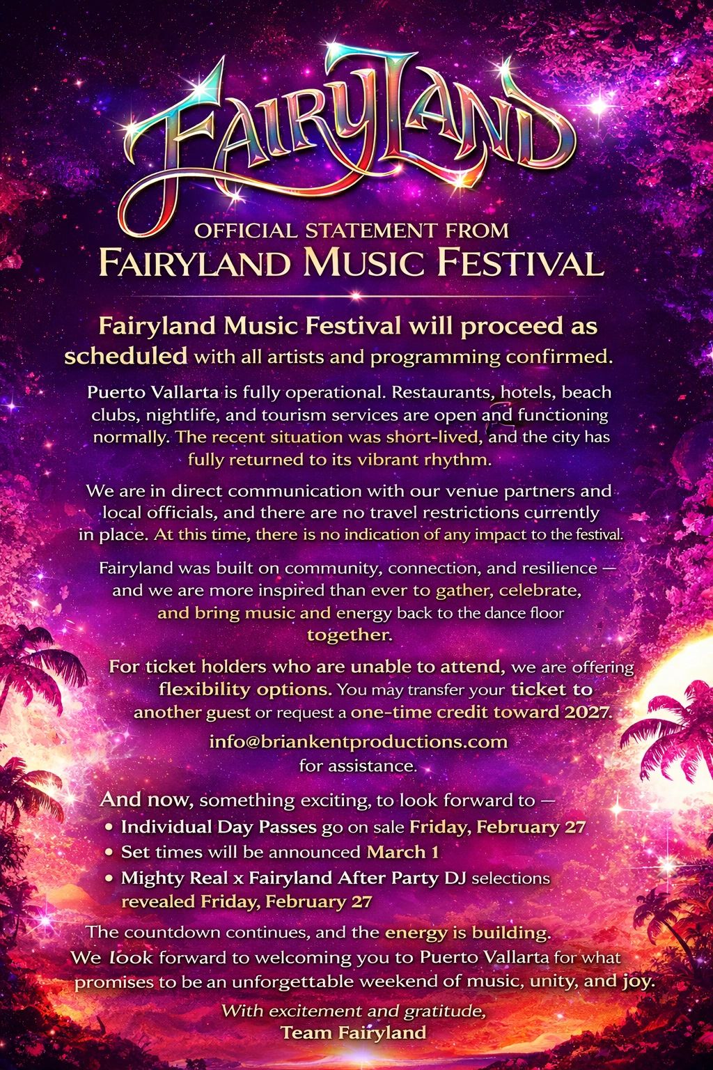 Con las impresionantes playas de Puerto Vallarta como telón de fondo, Fairyland promete una fusión perfecta de música, arte y cultura queer: un oasis donde cada golpe de bajo se siente mágico. Prepárate para bailar, conectar y formar parte de una comunidad que celebra la libertad, el amor y el poder innegable de la identidad queer.