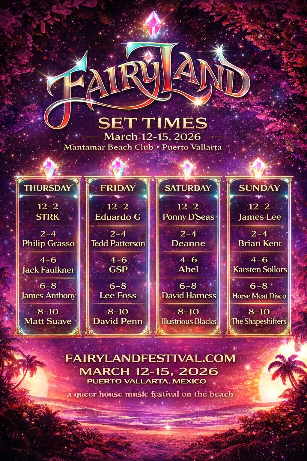 The DJs open the story. Soulful house and disco grooves ease everyone onto the dance floor as the Fairyland sound begins to bloom.